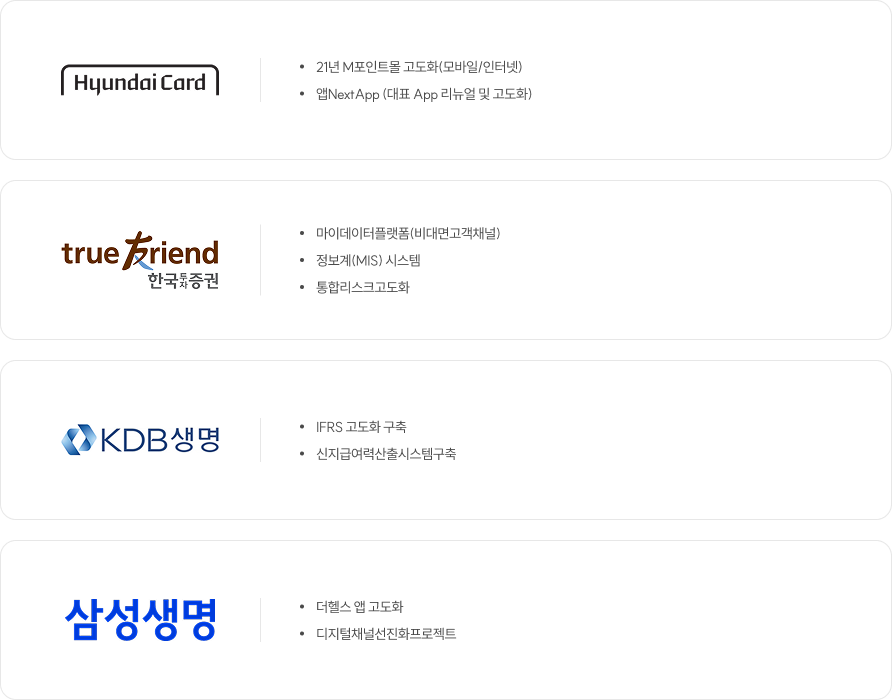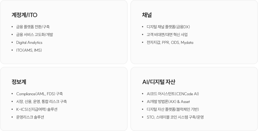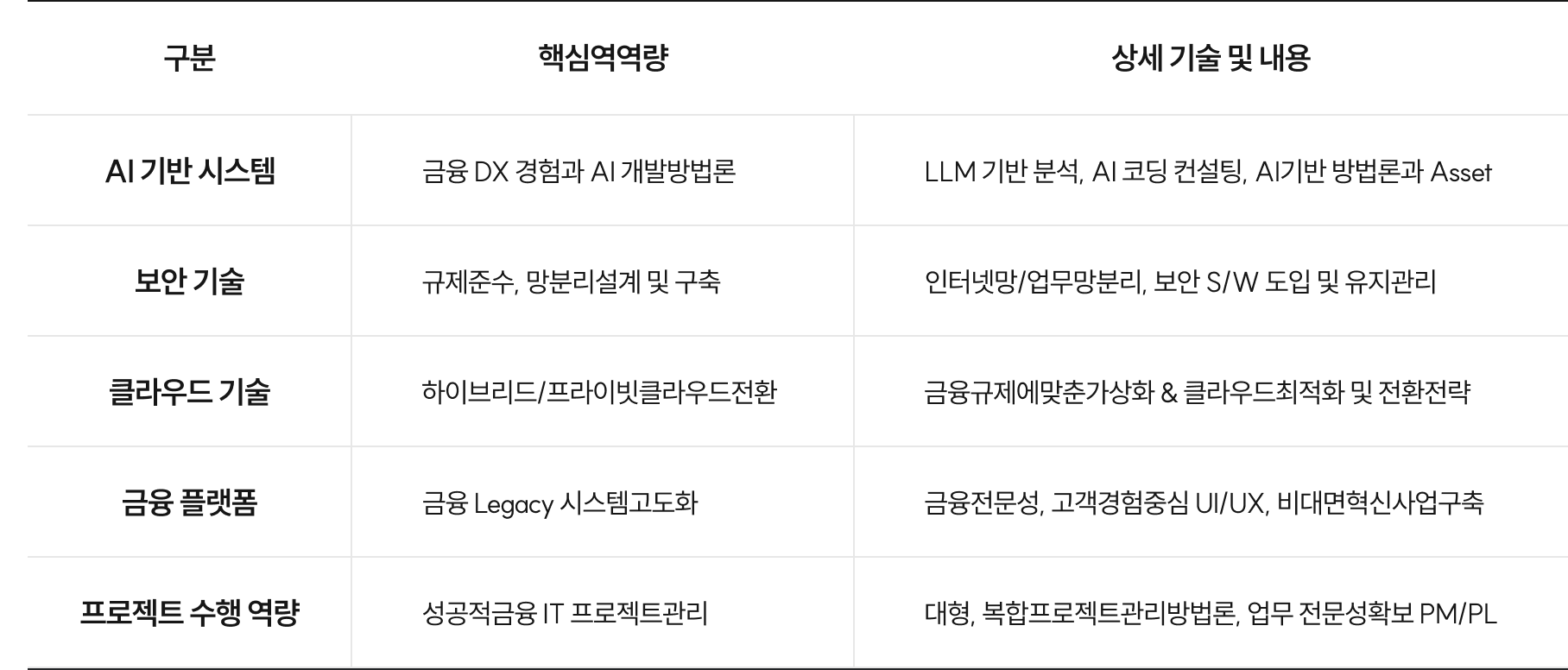 은행, 보험, 증권, 카드 등 금융기관의 코어시스템과 이를 AI, 클라우드와 연계하여 미래 경제/사회 구조 변화에 더욱 유연하고