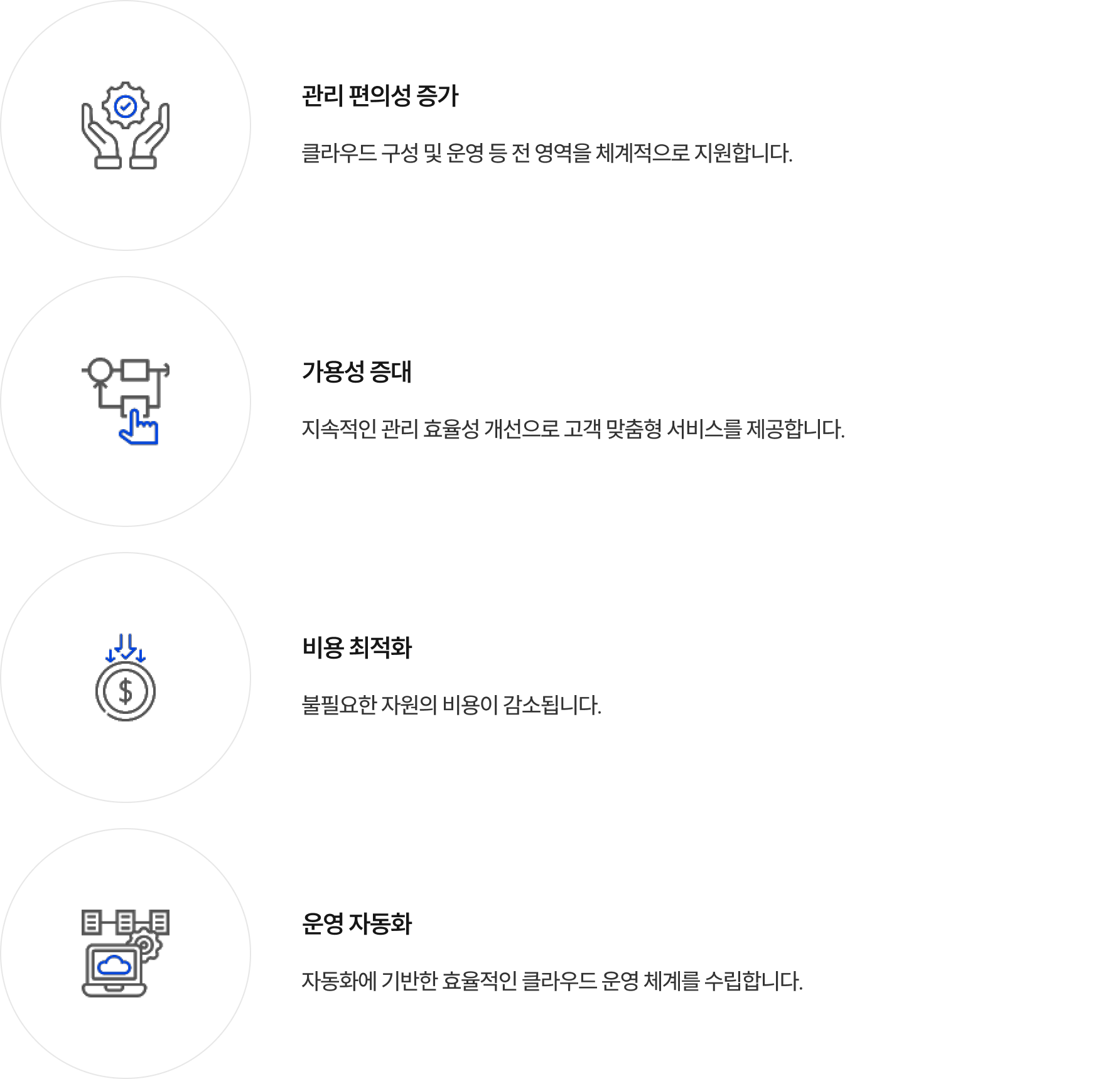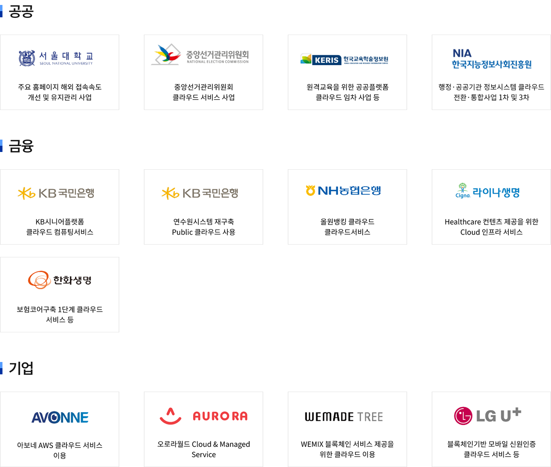 모든 산업 영역의 안정적 클라우드 운영 서비스를 제공합니다.